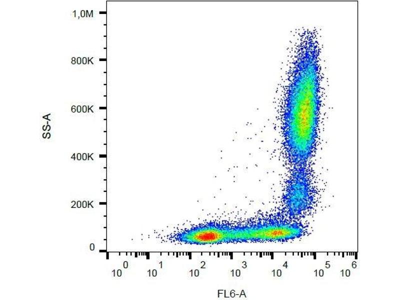 Flow cytometry: The reagent is designed for analysis of human blood cells using 10 μL reagent / 100 μL of whole blood or 106 cells in a suspension. The content of a vial (1 ml) is sufficient for 100 tests.