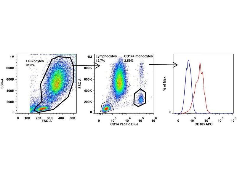 Der APC-konjugierte Maus Monoklonal anti-CD163 Antikörper (Klon GHI-61) (ABIN1302642) detektiert spezifisch CD163 in FACS.