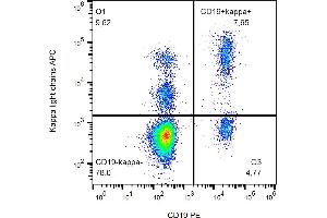 The antibody TB28-2 recognizes human Ig kappa light chains of both secreted and cell surface immunoglobulin. It detects also free kappa light chains.