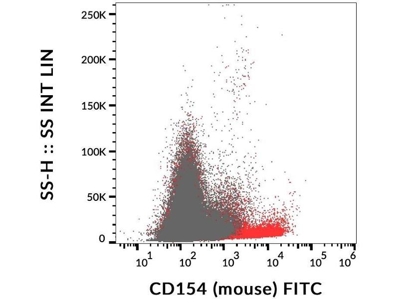 Der FITC-konjugierte Armenischer Hamster Monoklonal anti-CD40 Ligand Antikörper (Klon MR-1) (ABIN1302930) detektiert spezifisch CD40 Ligand in FACS.