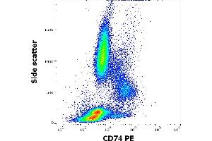 The antibody LN2 recognizes an extracellular epitope of CD74 (the MHC II-associated invariant chain, Ii), a type II transmembrane protein expressed in antigen-presenting cells, as well as e.g. on activated neoplastic cells in T cell lymphomas, in lymph node germinal center, mantle zone B cells, histiocytes, interdigitating reticulum cells, Langerhans cells, thymic dendritic cells and peripheral blood B lymphocytes.
