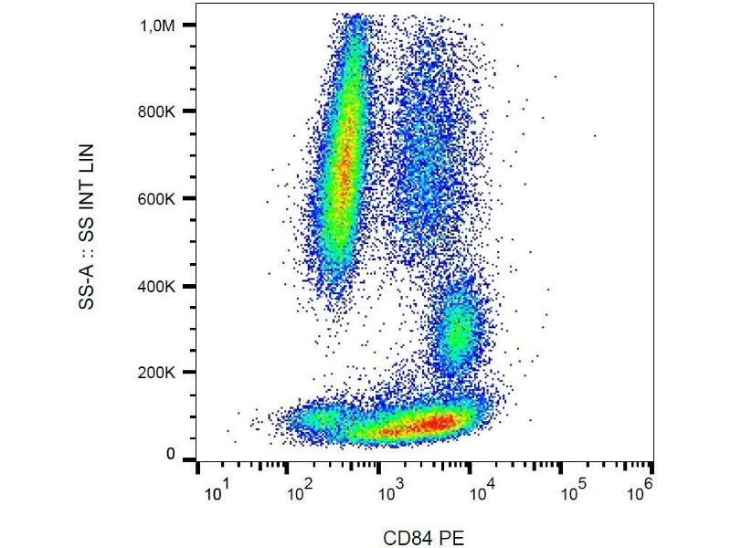 The mouse monoclonal antibody CD84.1.21 recognizes an extracellular epitope of CD84, a single chain cell surface glycoprotein of 64-82 kDa, predominantly expressed B cells, monocytes, platelets and some T cells.