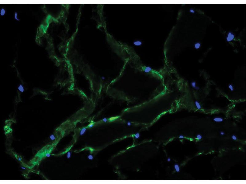 Der Maus Monoklonal anti-Fibrillin Antikörper wird verwendet zum Nachweis von Fibrillin in Proben von Rind (Kuh) und Human. Er wurde validiert für IHC, WB und ICC.