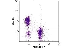 - CD19 is a monomeric transmembrane glycoprotein expressed at relatively constant levels throughout B cell development from early pro-B/pre-B cells (i.e., B220+/CD43+/HSA+) through fully differentiated B cell stages. Terminally differentiated plasma cells do not express CD19. In humans, the CD19 molecule on the surface of mature B cells associates with CD21 (CR-2) and CD81 (TAPA-1), and this multimolecular complex synergizes with surface immunoglobulin to provide signal transduction and promote cellular activation. All splenic and peritoneal IgM+ cells of both B-1 and B-2 lineages are CD19+, with B-1 cells expressing higher levels of CD19 than B-2 cells in these sites. Recent studies with CD19-deficient mice have suggested that this molecule may not be required for normal generation and maturation of B cells in the bone marrow.