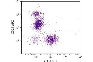 - CD24, also known as heat stable antigen, is a phosphatidylinositol-linked cell surface glycoprotein that is expressed at all stages of B cell development and on most thymocytes. The absence of expression from mature T cells is closely associated with their maturation from CD4+CD8+CD24+ thymocytes to either CD4+CD8-CD24- or CD4-CD8+CD24- T cells. CD24 is also present on mouse granulocytes, monocytes, Langerhans cells and erythrocytes. Its ligand is P-selectin (CD62P). CD24 may play a role in regulation of B cell proliferation and differentiation, and it has been proposed that heat stable antigen promotes homotypic adhesion between B lymphocytes.