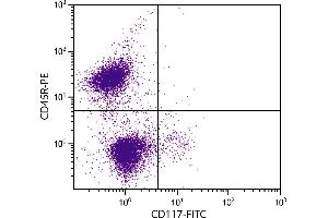 - The CD117/c-kit antigen is the cell-surface receptor for Stem Cell Factor (SCF). Together these molecules constitute a ligand/receptor pair which functions to maintain normal hematopoiesis in the adult. Signaling through SCF/c-kit has an important role in stimulating myeloid and erythroid production of primitive hematopoietic progenitor cells. A variety of cytokines act synergistically with SCF to stimulate proliferation and differentiation of bone marrow progenitor cells. For example, SCF plus IL-7 can stimulate the combined myeloid and B-cell differentiation of uncommitted hematopoietic progenitor cells.2 SCF/c-kit also participates in erythropoiesis in both the bone marrow and spleen. Loss-of-function mutations for SCF/c-kit lead to a variety of pleiotropic developmental defects, while gain-of-function mutations can lead to constitutive activation of the kit receptor and links to cancer. Examples of the former are mast cell deficiency and severe macrocytic anemia, while the latter mutation has been identified in mastocytomas. Anti-CD117 mAbs have been used to block the function of the c-kit receptor in a variety of studies. These include the blockade of hematopoiesis and disruption of melanocyte development.