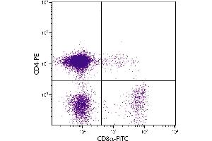 In the chicken, the CD8 molecule is present in two forms: (i) a homodimer of two chains, and (ii) a heterodimer of an chain and a chain. Chicken CD8 is expressed on approximately 80 % of thymocytes, 45 % of blood mononuclear cells and 50 % of spleen cells, but < 1 % of cells in the bursa and bone marrow. While the vast majority of CD8+ cells in the thymus, spleen, and blood of adult chickens express both CD8- and CD8-chains, a relatively large proportion of the CD8+ TCR- cells in the spleens of embryos and young chicks express only the -chain of CD8. Among intestinal epithelial lymphocytes, the major CD8+ T cell populations present in mice are conserved, but there is a population of TCR- CD8 cells in the chicken that is not found in rodents.