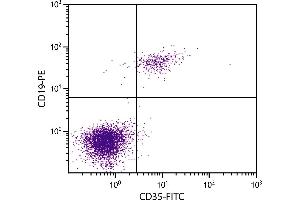 The CD35 antigen is composed of four different allotypes having different molecular weights (A (or F) - 160 kDa, B (or S) - 190 kDa, C - 220 kDa, and D - 250 kDa). It is the receptor for C3b and is found on B cells, a subset of T cells, monocytes, neutrophils, follicular dendritic cells, erythrocytes and kidney glomelular podocytes. CD35 mediates neutrophil and monocyte phagocytosis of particles coated with C3b and/or C4b. This interaction also enhances phagocytosis mediated by the Fc receptors.