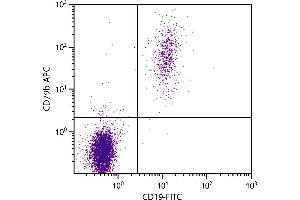 CD79 is a 23/21 disulfide-linked heterodimer composed of an chain (CD79a/mb-1) and a chain (CD79b/B29) that associates non-covalently with membrane immunoglobulin to form the B cell receptor (BCR) complex. Its expression is restricted to B lymphocytes, first appearing on the surface at the pro-B cell stage and remaining through all stages of B cell differentiation prior to plasma cells. Crosslinking of the BCR leads to B cell activation.