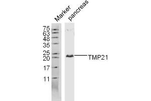 Background: MP21 is a member of the EMP24/GP25L/p24 cargo family of proteins that regulates vesicular trafficking in the early secretory pathway. TMP21 is a ubiquitously expressed single-pass type I membrane protein localizing to the Golgi cisternae and the plasma membrane. It contains one GOLD (Golgi dynamics) domain and participates in protein transport and quality control between the endoplasmic reticulum (ER) and the Golgi complex. In addition, TMP21 is a component of the heteromeric secretase complex (or Presenilin complex) and functions to regulate the ?secretase activity. Two isoforms, namely TMP21-I and TMP21-II, exist for this protein.