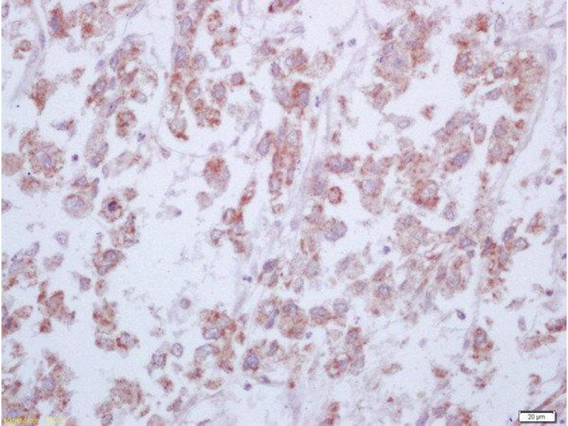 Background: Arginase I which is expressed almost exclusively in the liver, catalyzes the conversion of arginine to ornithine and urea . The human arginase I gene, which maps to chromosome 6q23, encodes a 322 amino acid protein. Arginase I exists as a homotrimeric protein and contains a binuclear manganese cluster. Arginase II catalyzes the same reaction as arginase I, but differs in its tissue specificity and subcellular location. Specifically, arginase II localizes to the mitochondria. Arginase II is expressed in non-hepatic tissues, with the highest levels of expression in the kidneys, but, unlike arginase I, is not expressed in liver. The human arginase II gene, which maps to chromosome 14q24.1-q24.3, encodes a 354 amino acid protein. In addition, arginase II contains a putative amino-terminal mitochondrial localization sequence.