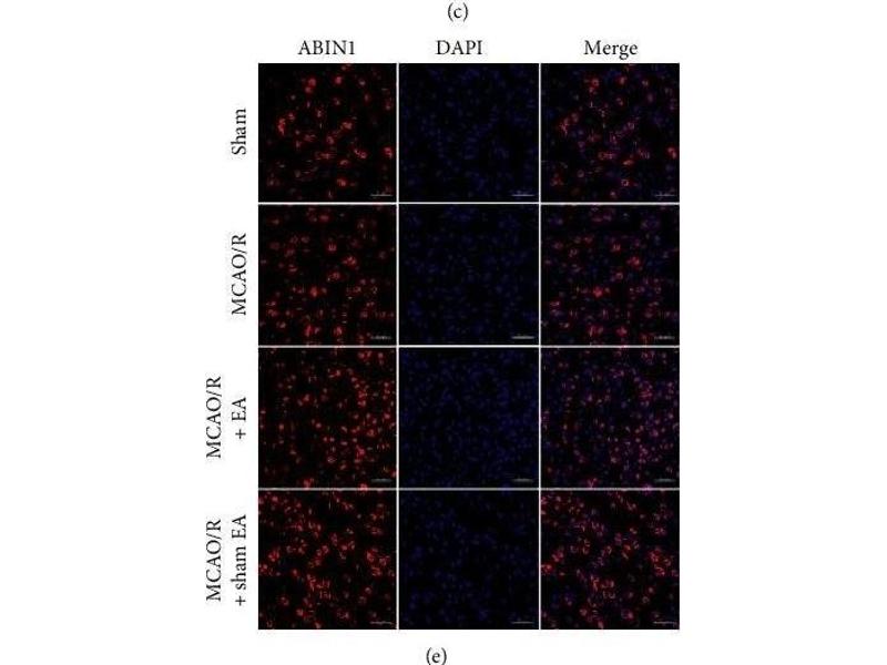 Background: Abin-1 is a 636 amino acid protein that localizes to both the nucleus and the cytoplasm and is shuttled between the two intercellular regions in a CRM1-dependent manner. Expressed ubiquitously with highest expression in spleen and skeletal muscle, Abin-1 interacts with A20 and, via this interaction, interferes with TRAF2-mediated transactivation signals and effectively inhibits TNF-induced NF_B expression. Additionally, Abin-1 can be incorporated into HIV-1 virions and, if overexpressed, can inhibit viral replication. Abin-1 may also play an important role in the regulation of nuclear import and export activities. Multiple isoforms of Abin-1 exist due to alternative splicing events.