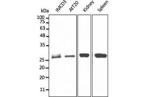 - Detects a band of 25 kDa by Western blot in the following human, rat and mouse whole cell lysates and transfected cells with GFP-Rab11b cds. This Ab is specific for Rab11b, it does not recognize Rab11a.