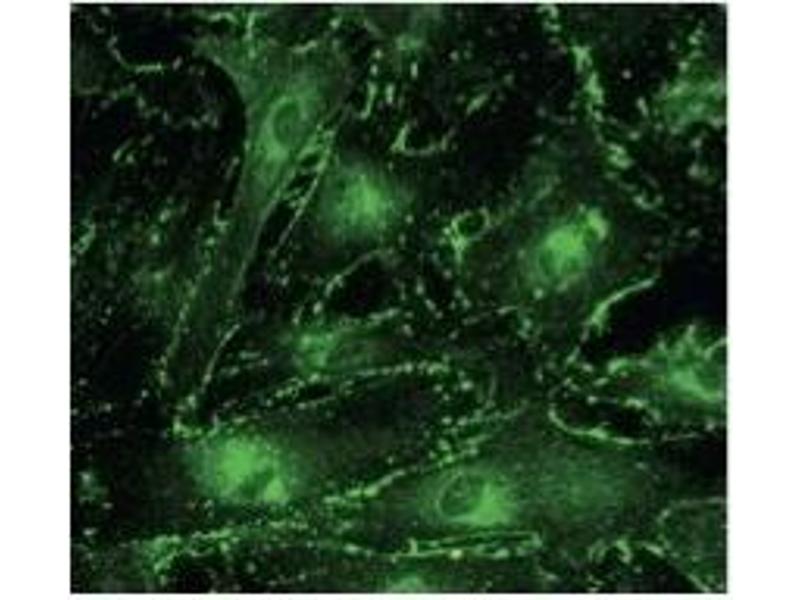 Goat polyclonal to connexin 43, which is a member of the connexin family. Cx43 is a component of gap junctions, which are composed of arrays of intercellular channels that provide a route for the diffusion of low molecular weight materials from cell to cell. This protein is the major protein of gap junctions in embryonic development and in the heart that are thought to have a crucial role in the synchronized contraction of the heart.