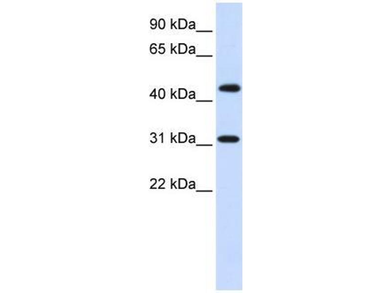 Der Kaninchen Polyklonal anti-ZNF684 Antikörper (ABIN1449819) detektiert spezifisch ZNF684 in WB.