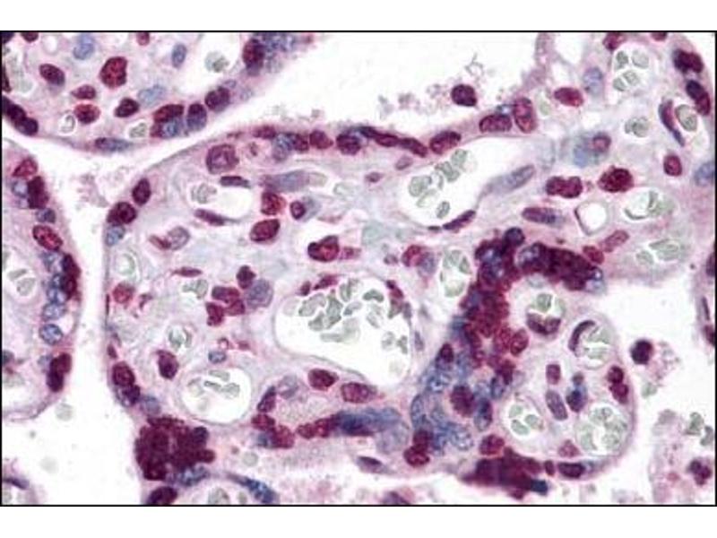 Karyopherin, a cytosolic and heterodimeric protein complex consisting of alpha and beta subunits, is responsible for targeting proteins with nuclear localization signals to the nuclear pore complex (NPC) by an energy requiring, Ran-dependent mechanism. The alpha subunit and imported substrate enter the nucleus and accumulate in the nucleoplasm, while the beta subunit accumulates at the NPC. KPNA7 is most closely related to KPNA2, but unlike KPNA2, KPNA7 primarily localizes to the nucleus. It has been suggested that KPNA7 may play a role in the transport of essential nuclear proteins required for early embryogenesis.Synonyms: Importin alpha 8, Importin subunit alpha-8, Karyopherin alpha 7, Karyopherin subunit alpha-7