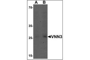 The vanin family is a novel group of ectoenzymes that function in tissue repair and plays a role in oxidative-stress response. As both secreted and membrane proteins, the vanin family members have been implicated as therapeutic targets in inflammatory disease. VNN3 (vascular non-inflammatory molecule 3), also known as Vanin3, is a 501 amino acid GPI-anchored amidohydrolase that is widely expressed and is found at highest levels in blood and liver. Induced by Th17 / Th1 type cytokines, VNN3 converts pantetheine into pantothenic acid. Containing one CN hydrolase domain, VNN3 is encoded by a gene that maps to human chromosome 6q23.2.Synonyms: HSA238982, Vanin 3, Vascular non-inflammatory molecule 3