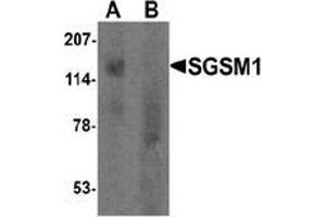 Small G proteins such as RAP and RAB proteins are the key molecules in intracellular signal transduction and vesicle transportation. A novel protein family small G protein signaling modulator (SGSM) consisting of three members SGSM1-3 bind to RAP and RAB family proteins. All three SGSM proteins possess both a RUN domain and a TBC domain. SGSM1 (RUTBC2) is a 1,148 amino acid protein that localizes to the Golgi apparatus and is mainly expressed in the CNS. SGSM1 interacts with RAP and RAB subfamily members of the small G proteins, and function as modulators of RAP and RAB-mediated neuronal signal transduction and vesicular transportation pathways.Synonyms: RUTBC2, Small G protein signaling modulator 1