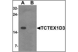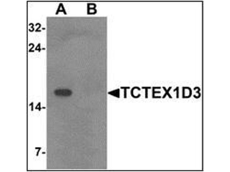 Dyneins are multi-subunit, high molecular weight ATPases that interact with microtubules to generate force by converting the chemical energy of ATP into the mechanical energy of movement. Cytoplasmic or axonemal Dynein is an approximately 12 subunit complex of two heavy chains, two intermediate chains to anchor Dynein to its cargo, four smaller intermediate chains and several light chains. It performs functions necessary for cell survival such as organelle transport and centrosome assembly. TCTEX1 is a cytoplasmic dynein light chain found in a complex with Na+ CP type X (SCN10A). TCTEX1D3, also called TCTE3, has been identified as a gene responsible for congenital diaphragmatic hernia (CDH).Synonyms: T-complex testis-specific protein 3, T-complex-associated testis-expressed protein 3, TCTEX1D3, Tcte-3, Tctex1 domain-containing protein 3