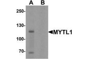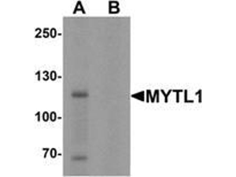 The myelin transcription factor 1 family, to which the myelin transcription factor 1-like protein (MYT1L) belongs, is expressed primarily in the developing central nervous system and recruits histone deacetylase (HDAC) to regulate neural transcription. Both MYT1L and the related protein MYT1 interact with SIN3B, a protein that mediates transcriptional repression by binding to HDACs, suggesting that the MYT1 family favor the silencing of genes during neural development. Recent studies suggest that polymorphisms of MYT1L may be associated with schizophrenia.Synonyms: KIAA1106, MYT1L, Myelin transcription factor 1-like protein