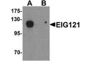 - EIG121 (Estrogen-induced gene 121 protein) is thought to play a role as a marker of hyperestrogenic state and estrogen-related type I endometrial carcinoma. It belongs to the UPF0577 family. It is a 1013 amino acid single-pass transmembrane protein that, though expressed in normal endometrium, is overexpressed in endometriod tumors. As an evolutionarily conserved gene, EIG121 is also expressed during early xenopus development, showing maximum expression at the gastrula stage.Synonyms: Estrogen-induced gene 121 protein, UPF0577 protein KIAA1324