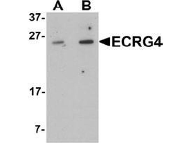 The esophageal cancer-related gene 4 (ECRG4), also known as Augurin, was identified through differential display screening between esophageal cancer and normal tissue. Hypermethylation of CpG sites in the ECRG4 promoter correlate with ECRG4 downregulation in numerous esophageal squamous cell carcinoma tissues.. In transfected cells, overexpression of ECRG4 induced G1 arrest, dephosphorylation of Rb and decreased expression of cyclins D1 and D3. Increased expression of ECRG4 in aged mouse brain is observed compared with young mouse brain. The increased ECRG4 level was accompanied by elevated senescence-associated acidic beta-galactosidase activity, suggesting that ECRG4 is involved in cellular differentiation and senescence.Synonyms: C2orf40, ECRG4