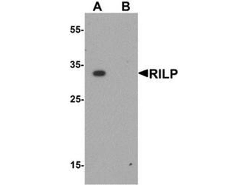 The Rab interacting lysosomal protein (RILP) is lysosomal protein that interacts with RAB7, a small GTPase that controls transport to endocytic degradative compartments. It is thought that RILP is a downstream effector of RAB7 and both proteins act together in the regulation of late endocytic traffic. Overexpression of RILP caused enlarged lysosomes that are more centrally located in the cell suggesting that RILP may also be involved in the regulation of lysosomal morphology . Other evidence suggests that RILP may play a role in the biogenesis of multivesicular bodies.Synonyms: PP10141, Rab-interacting lysosomal protein
