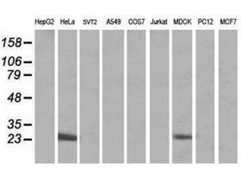 Dieser Maus Monoklonal Antikörper erkennt spezifisch MRPS34 in WB, IF, IHC und IHC (p). Er zeigt eine Reaktivität gegenüber Human und Hund.