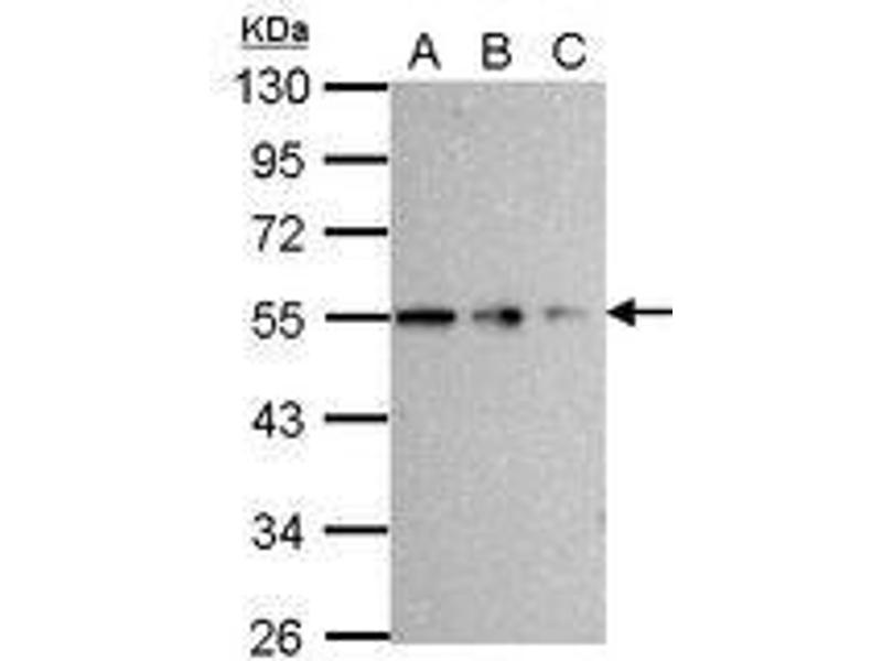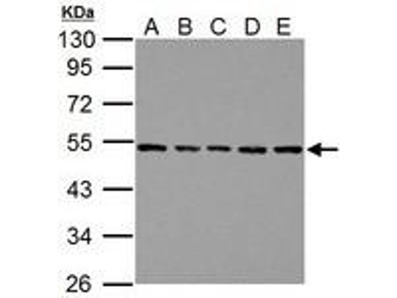 Usage: Suggested starting dilutions are as follows: Western blot: 1:1000-1:10000, IHC-Paraffin: 1:100-1:1000, ICC/IF: 1:100-1:1000. Not yet tested in other applications. Optimal working dilutions should be determined experimentally by the end user.