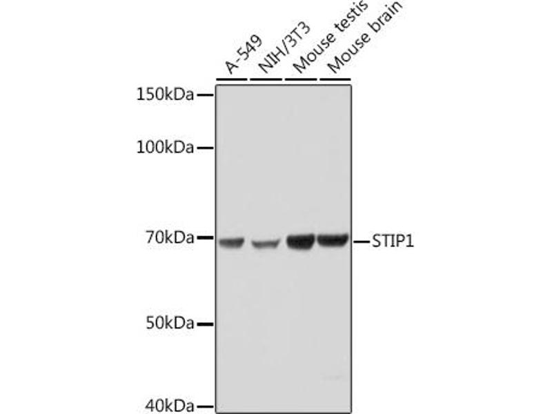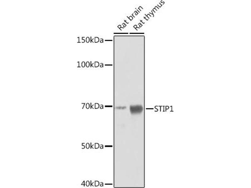 STIP1 is an adaptor protein that coordinates the functions of HSP70 (see HSPA1A, MIM 140550) and HSP90 (see HSP90AA1, MIM 140571) in protein folding. It is thought to assist in the transfer of proteins from HSP70 to HSP90 by binding both HSP90 and substrate-bound HSP70. STIP1 also stimulates the ATPase activity of HSP70 and inhibits the ATPase activity of HSP90, suggesting that it regulates both the conformations and ATPase cycles of these chaperones (Song and Masison, 2005 [PubMed 16100115]).[supplied by OMIM, Jul 2009],HEL-S-94n, HOP, IEF-SSP-3521, P60, STI1, STI1L,Epigenetics & Nuclear Signaling,Neurodegenerative Diseases,Neuroscience,RNA Binding,Signal Transduction,STIP1