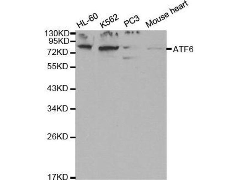 This gene encodes a transcription factor that activates target genes for the unfolded protein response (UPR) during endoplasmic reticulum (ER) stress. Although it is a transcription factor, this protein is unusual in that it is synthesized as a transmembrane protein that is embedded in the ER. It functions as an ER stress sensor/transducer, and following ER stress-induced proteolysis, it functions as a nuclear transcription factor via a cis-acting ER stress response element (ERSE) that is present in the promoters of genes encoding ER chaperones. This protein has been identified as a survival factor for quiescent but not proliferative squamous carcinoma cells. There have been conflicting reports about the association of polymorphisms in this gene with diabetes in different populations, but another polymorphism has been associated with increased plasma cholesterol levels. This gene is also thought to be a potential therapeutic target for cystic fibrosis.,ATF6,ACHM7,ATF6A,Epigenetics & Nuclear Signaling,Transcription Factors,Neuroscience,Neurodegenerative Diseases,ATF6