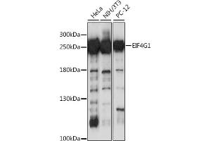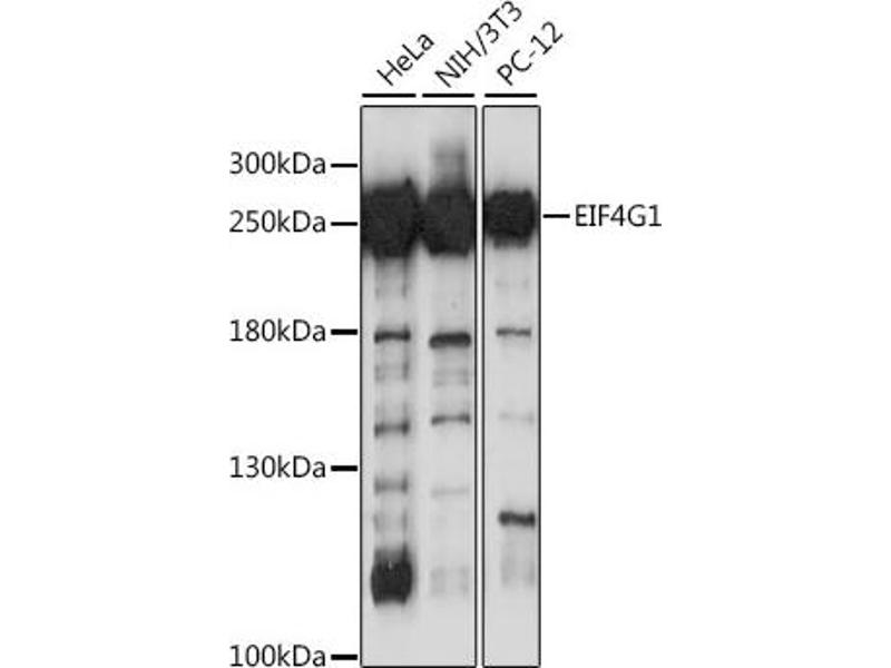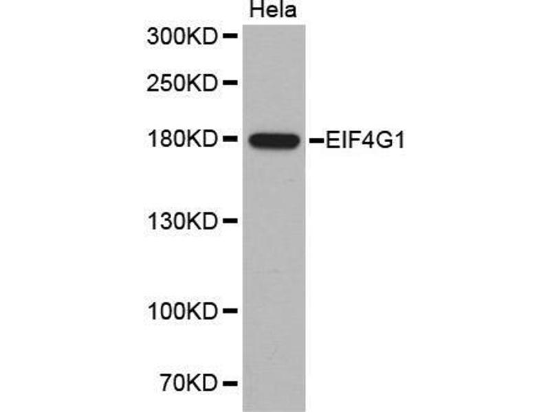The protein encoded by this gene is a component of the multi-subunit protein complex EIF4F. This complex facilitates the recruitment of mRNA to the ribosome, which is a rate-limiting step during the initiation phase of protein synthesis. The recognition of the mRNA cap and the ATP-dependent unwinding of 5'-terminal secondary structure is catalyzed by factors in this complex. The subunit encoded by this gene is a large scaffolding protein that contains binding sites for other members of the EIF4F complex. A domain at its N-terminus can also interact with the poly(A)-binding protein, which may mediate the circularization of mRNA during translation. Alternative splicing results in multiple transcript variants, some of which are derived from alternative promoter usage.,EIF4G1,EIF-4G1,EIF4F,EIF4G,EIF4GI,P220,PARK18,Epigenetics & Nuclear Signaling,RNA Binding,Translation Control,Regulation of eIF4 and p70 S6 Kinase,Signal Transduction,PI3K-Akt Signaling Pathway,Immunology & Inflammation,Akt downstream targets,EIF4G1