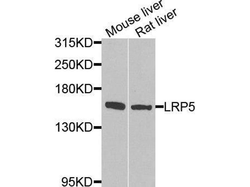 This gene encodes a transmembrane low-density lipoprotein receptor that binds and internalizes ligands in the process of receptor-mediated endocytosis. This protein also acts as a co-receptor with Frizzled protein family members for transducing signals by Wnt proteins and was originally cloned on the basis of its association with type 1 diabetes mellitus in humans. This protein plays a key role in skeletal homeostasis and many bone density related diseases are caused by mutations in this gene. Mutations in this gene also cause familial exudative vitreoretinopathy. Alternative splicing results in multiple transcript variants.,LRP5,BMND1,EVR1,EVR4,HBM,LR3,LRP-5,LRP7,OPPG,OPS,OPTA1,VBCH2,Epigenetics & Nuclear Signaling,Translation Control,Regulation of eIF4 and p70 S6 Kinase,Cancer,Signal Transduction,mTOR Signaling Pathway,Cell Biology & Developmental Biology,Cytoskeleton,Microtubules,Extracellular Matrix,Bone,Wnt/β-Catenin Signaling Pathway,ESC Pluripotency and Differentiation,Endocrine & Metabolism,Lipid Metabolism,Cholesterol Metabolism,Neuroscience,Stem Cells,Cardiovascular,Lipids,LRP5