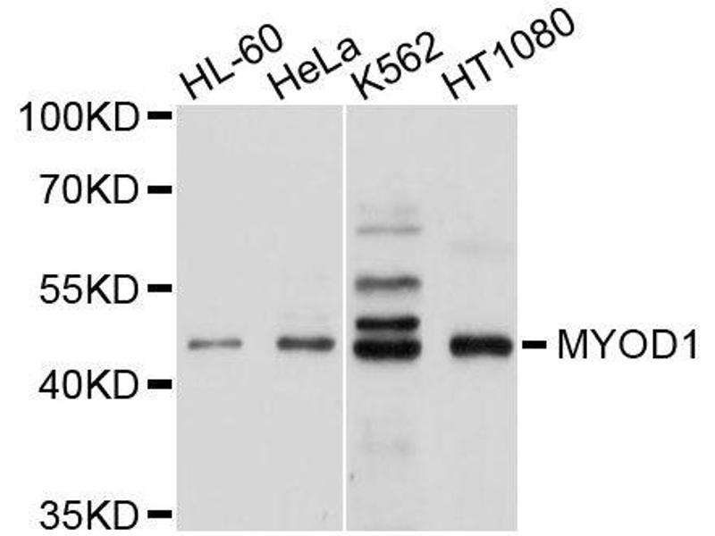 Der Kaninchen Polyklonal anti-MYOD1 Antikörper (ABIN1513236) detektiert spezifisch MYOD1 in WB und IF.