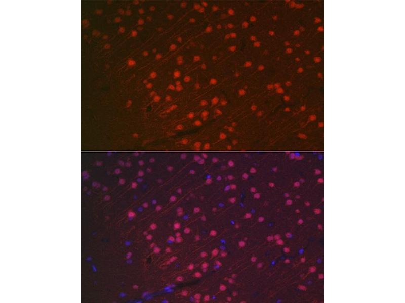This gene encodes a member of the RNA-binding FOX protein family which is involved in the regulation of alternative splicing of pre-mRNA. The protein has an N-terminal proline-rich region, an RNA recognition motif (RRM) domain, and a C-terminal alanine-rich region. This gene produces the neuronal nuclei (NeuN) antigen that has been widely used as a marker for post-mitotic neurons. This gene has its highest expression in the central nervous system and plays a prominent role in neural tissue development and regulation of adult brain function. Mutations in this gene have been associated with numerous neurological disorders. Alternative splicing of this gene results in multiple transcript variants encoding distinct isoforms.,FOX-3,FOX3,HRNBP3,NEUN,NeuN,RBFOX3,Epigenetics & Nuclear Signaling,Transcription Factors,Neuroscience,Cell Type Marker,Neuron marker,RBFOX3