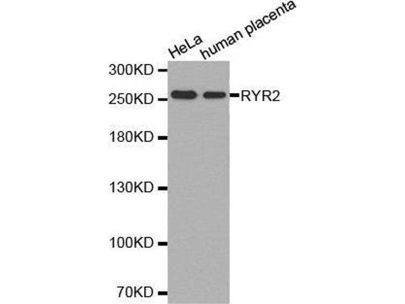 This gene encodes a ryanodine receptor found in cardiac muscle sarcoplasmic reticulum. The encoded protein is one of the components of a calcium channel, composed of a tetramer of the ryanodine receptor proteins and a tetramer of FK506 binding protein 1B proteins, that supplies calcium to cardiac muscle. Mutations in this gene are associated with stress-induced polymorphic ventricular tachycardia and arrhythmogenic right ventricular dysplasia.,RYR2,ARVC2,ARVD2,RYR-2,RyR,VTSIP,RYR2,Cancer,Signal Transduction,Endocrine & Metabolism,Neuroscience,Calcium Signaling,Cardiovascular,Hypoxia,Heart,Contractility,Cardiac arrhythmias,RYR2