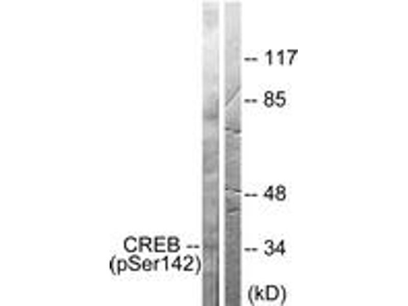 CREB (Phospho-Ser142) Antibody detects endogenous levels of CREB only when phosphorylated at Ser142.