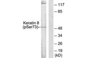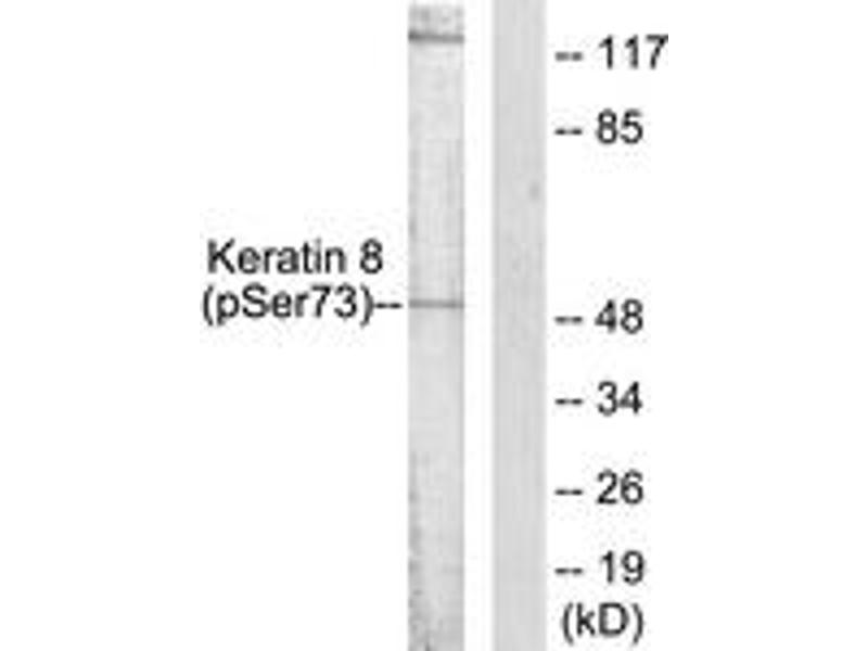 Keratin 8 (Phospho-Ser73) Antibody detects endogenous levels of Keratin 8 only when phosphorylated at Ser73.