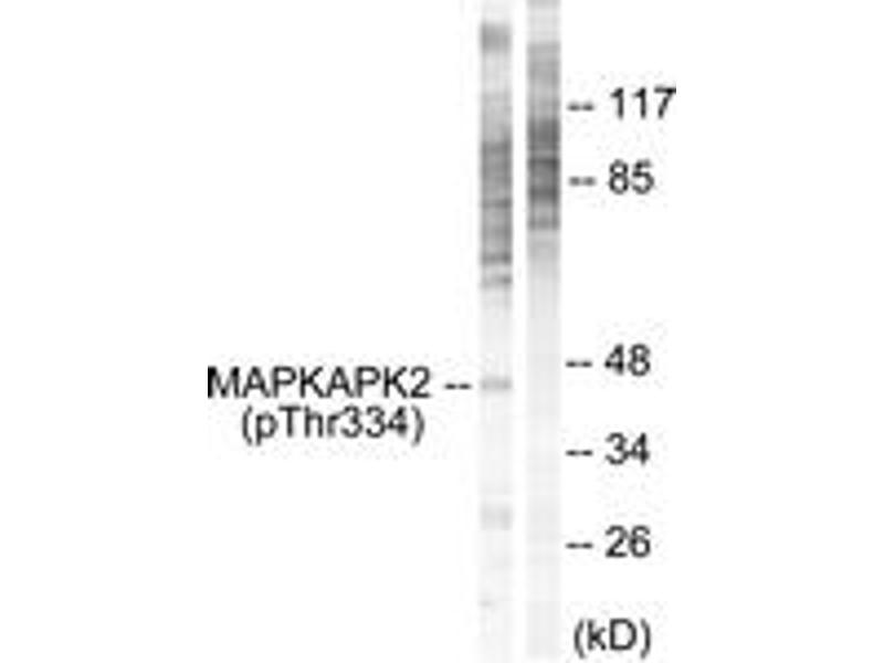 - The antiserum was produced against synthesized peptide derived from human MAPKAPK2 around the phosphorylation site of Thr334.