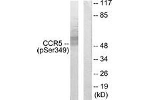 CCR5 (Phospho-Ser349) Antibody detects endogenous levels of CCR5 only when phosphorylated at Ser349.