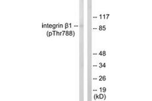 Integrin beta1 (Phospho-Thr788) Antibody detects endogenous levels of Integrin beta1 only when phosphorylated at Thr788.