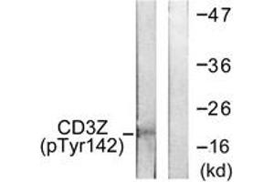CD3 zeta (Phospho-Tyr142) Antibody detects endogenous levels of CD3 zeta only when phosphorylated at Tyr142.