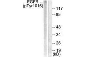 EGFR (Phospho-Tyr1016) Antibody detects endogenous levels of EGFR only when phosphorylated at Tyr1016.