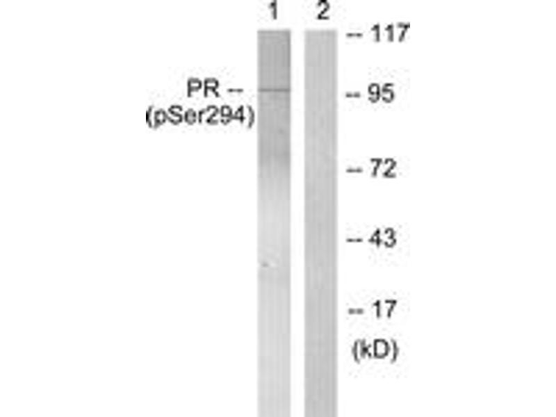 Progesterone Receptor (Phospho-Ser294) Antibody detects endogenous levels of Progesterone Receptor only when phosphorylated at Ser294.