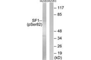 SF1 (Phospho-Ser82) Antibody detects endogenous levels of SF1 only when phosphorylated at Ser82.