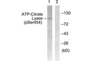The antiserum was produced against synthesized peptide derived from human ATP-Citrate Lyase around the phosphorylation site of Ser454.