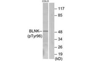 - The antiserum was produced against synthesized peptide derived from human BLNK around the phosphorylation site of Tyr96.