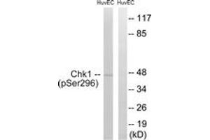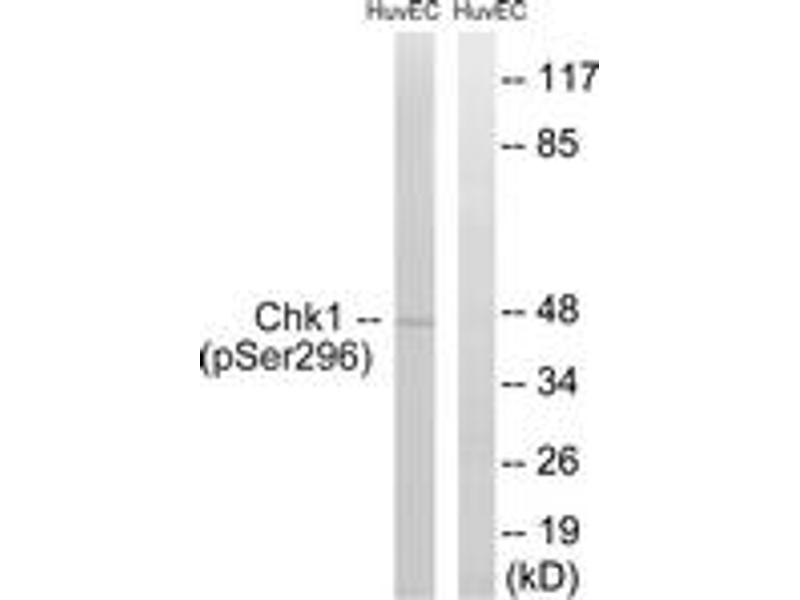 Chk1 (Phospho-Ser296) Antibody detects endogenous levels of Chk1 only when phosphorylated at Ser296.