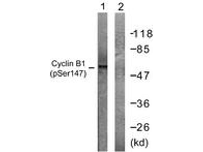 Cyclin B1 (Phospho-Ser147) Antibody detects endogenous levels of Cyclin B1 only when phosphorylated at Ser147.