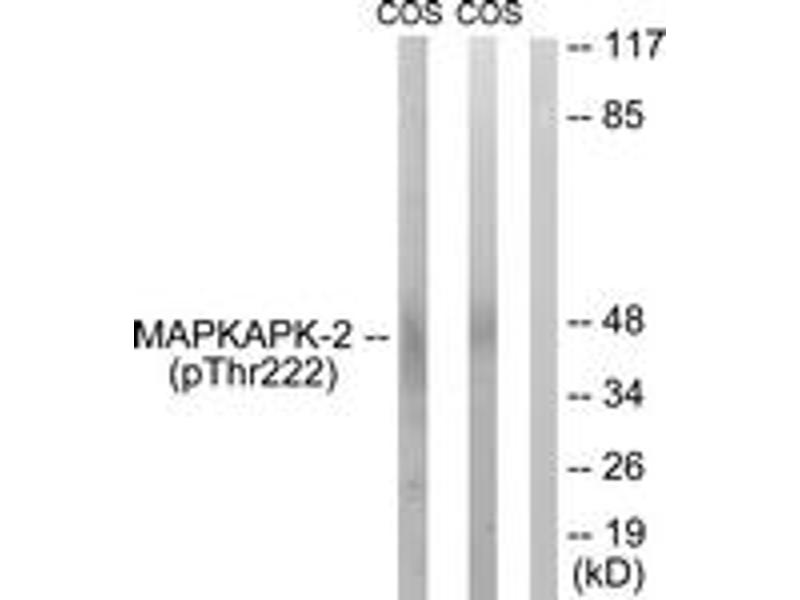 - The antiserum was produced against synthesized peptide derived from human MAPKAPK-2 around the phosphorylation site of Thr222.